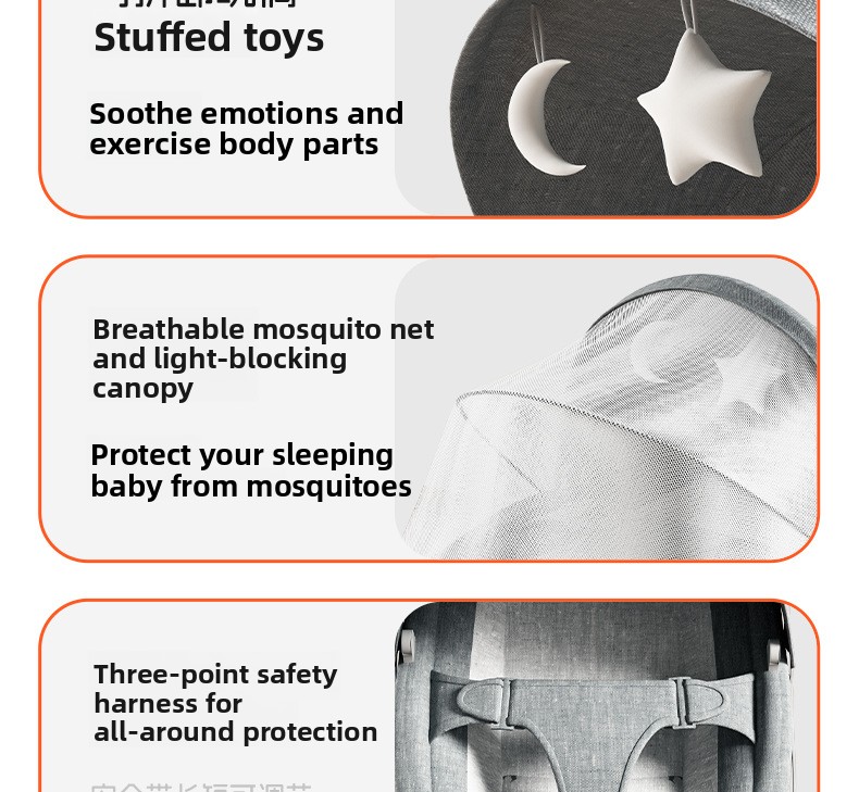 Interactive Features: Includes a plush toy and mesh canopy for added comfort and engagement.